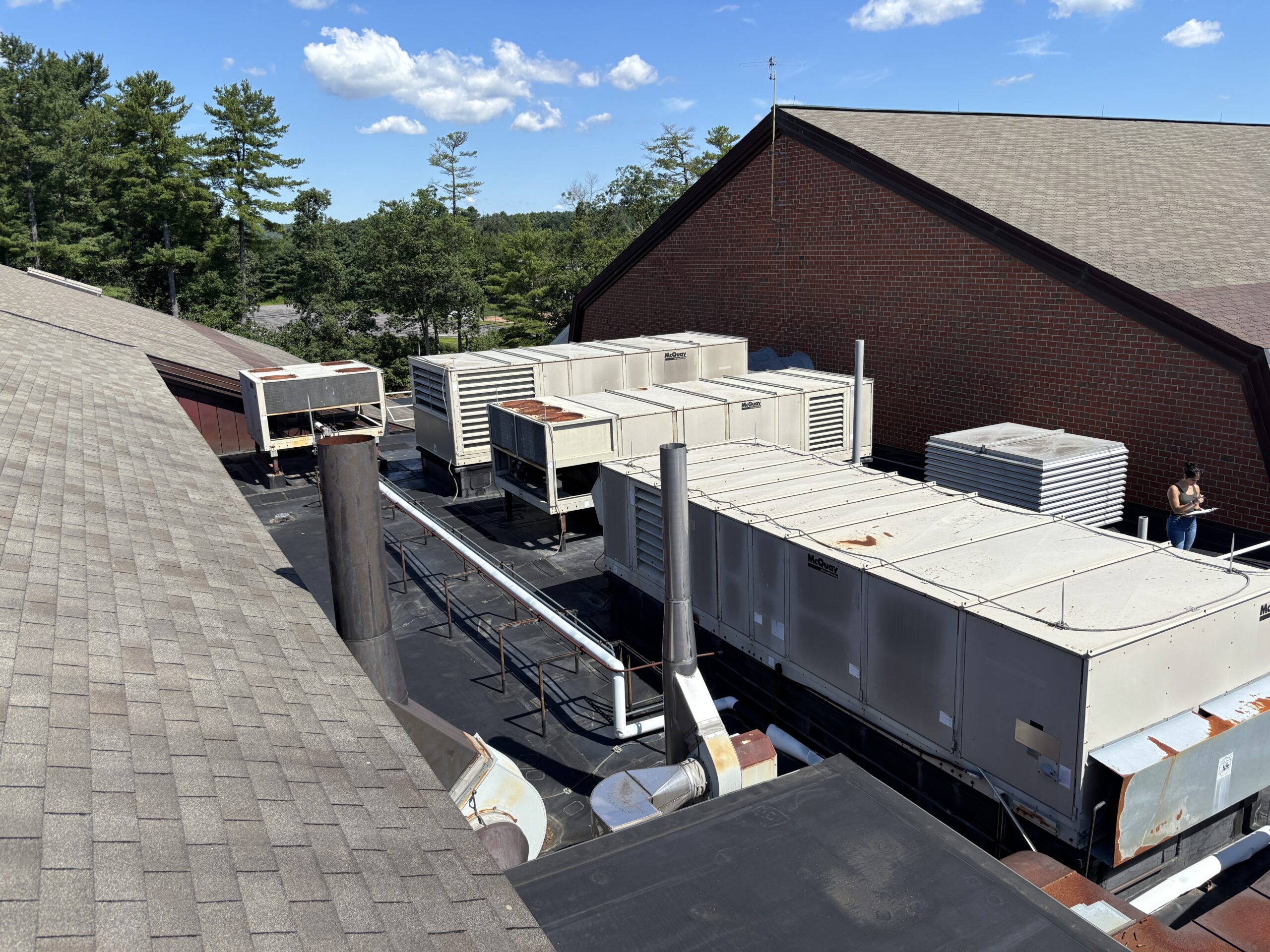 Nipmuc Regional High School consists of 13 different roofs with varying systems such as standing seam metal roof, asphalt shingle, EPDM membrane, as well as concrete pavers over EPDM creating an accessible patio space. All of these roof systems will be replaced as a part of the MSBA accelerated repair program. This project is currently in the CD phase.